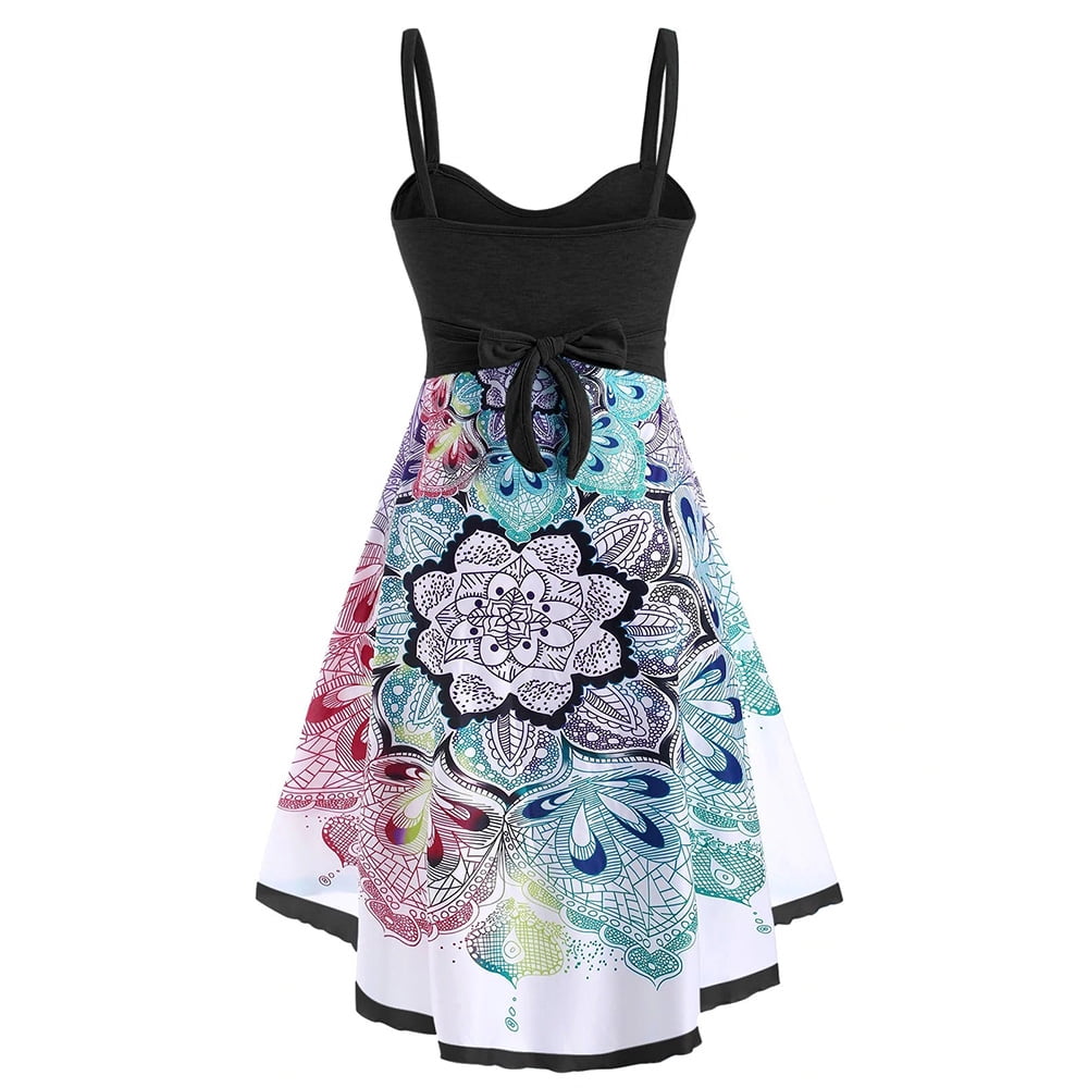 Women Boho Flower Print Spaghetti Straps Empire Waist Dress Walmart Com